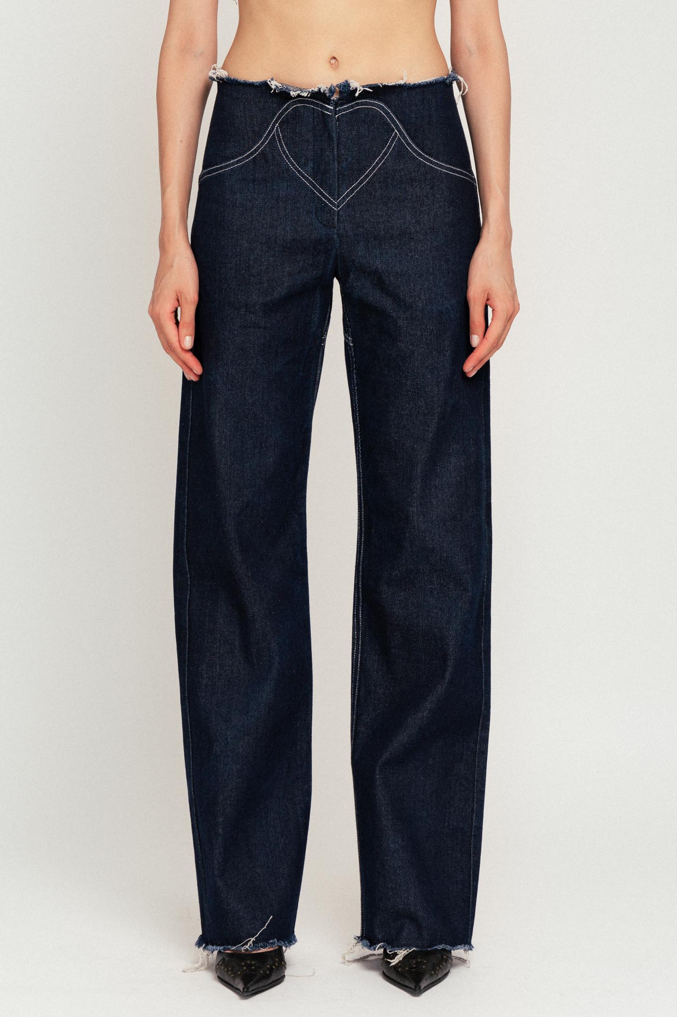 - Waist type: straight and frayed