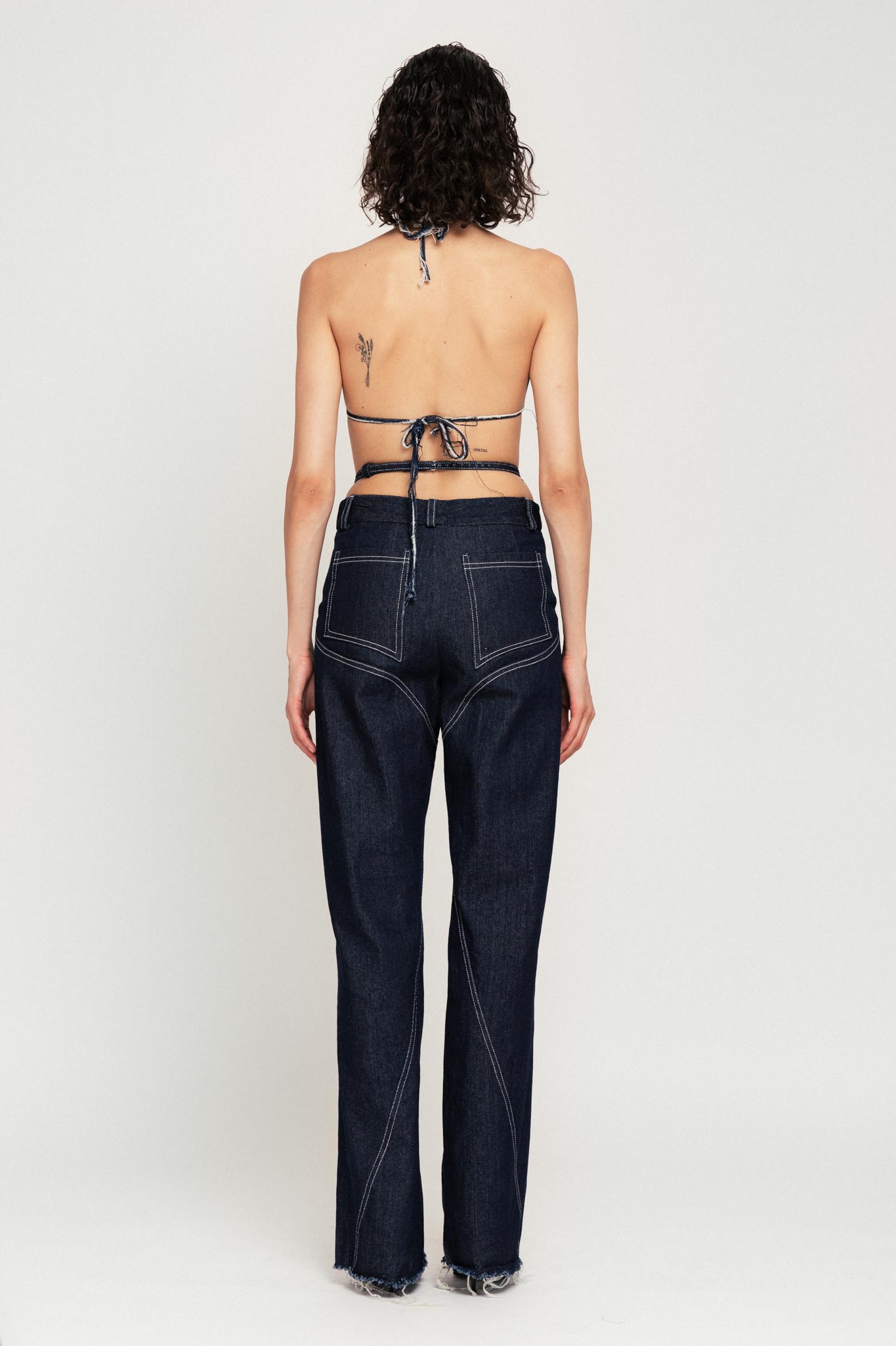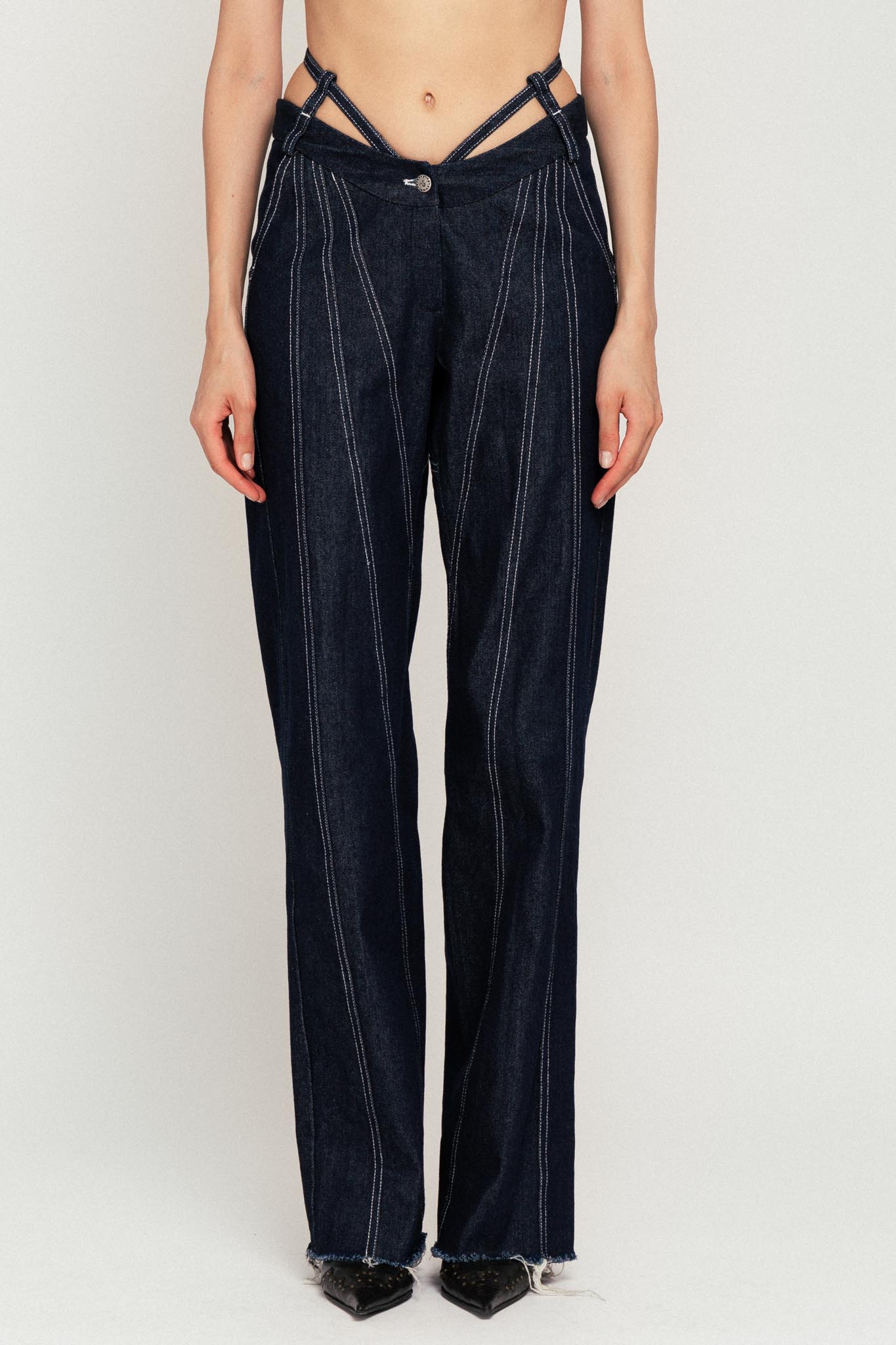 Baggy trousers in washed denim with our signature ’’Siren Waist’’ and an adjustable G-string.